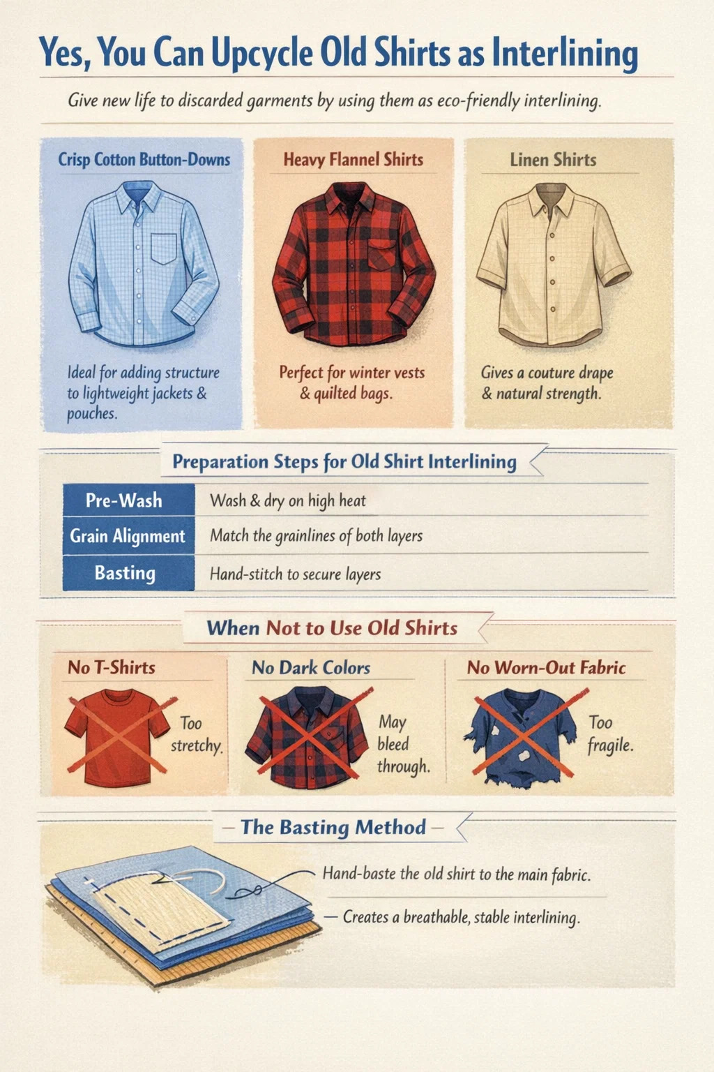 Прямой ответ: да, вы можете переработать старые рубашки, как Флизелин